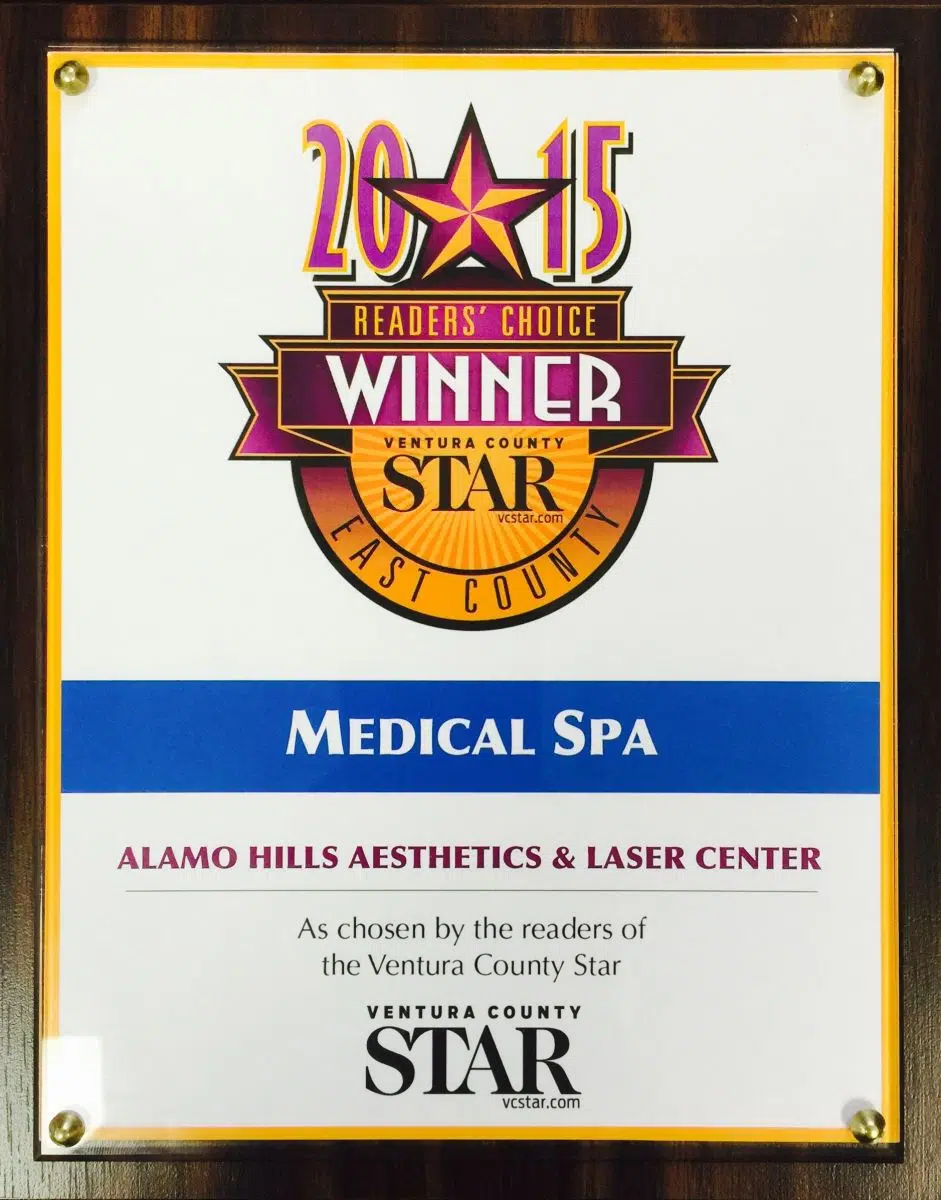 Alamo Hills Advanced Aesthetics & Laser Center was voted BEST AESTHETIC PRACTICE OF 2017 and was given the prestigious award by THE Aesthetic Academy. The Center was chosen as the winner for BEST MEDICAL SPA in East Ventura County in 2015 by Readers’ Choice, and a favorite in 2014.